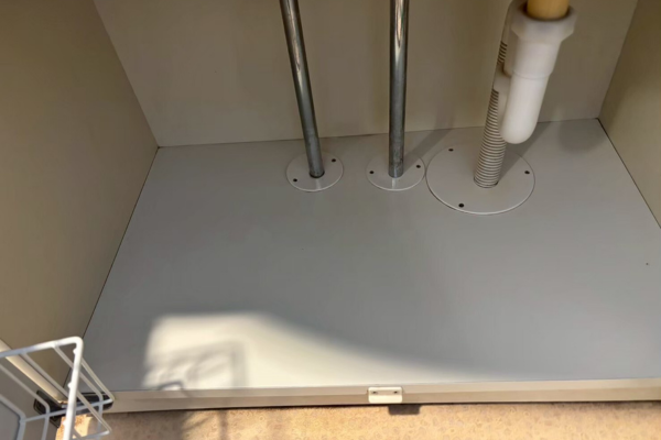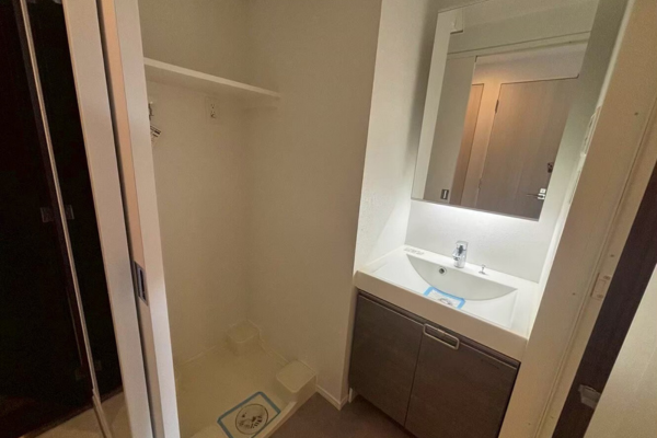 洗面台下の収納内部は、埃が溜まりやすく、使用感が出やすい部分です。汚れを丁寧に除去し、全体の印象が明るくなるよう仕上げました。細部まで整えることで、物件全体の管理品質向上につながります。