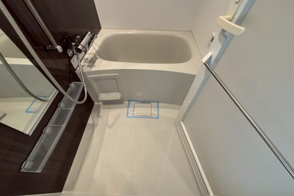 浴室に蓄積しやすい石鹸カスや皮脂汚れを、素材に配慮しながら清掃しました。水回りは内見時の印象を大きく左右するポイントです。清潔感のある浴室に整えることで、物件の印象アップと入居促進につなげています。
